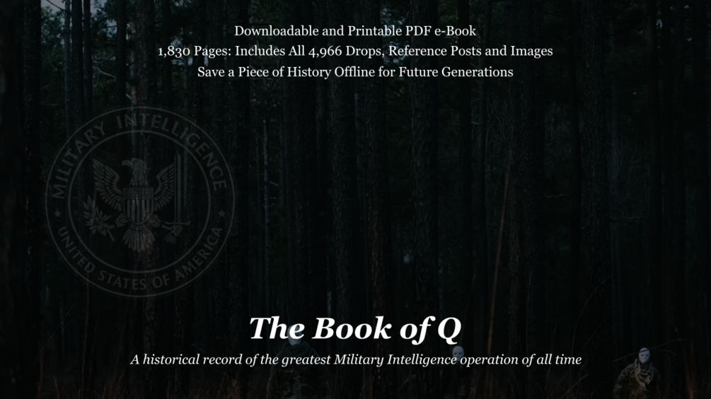 This e-book presents a historical collection of all the posts made by the group known as "Q," spanning from their first post on October 28, 2017, to their most recent on November 27, 2022. It also includes all accompanying images, which are clickable for full-size viewing in most PDF/e-book readers, as well as an abbreviations section to help readers understand commonly used terms throughout the drops.